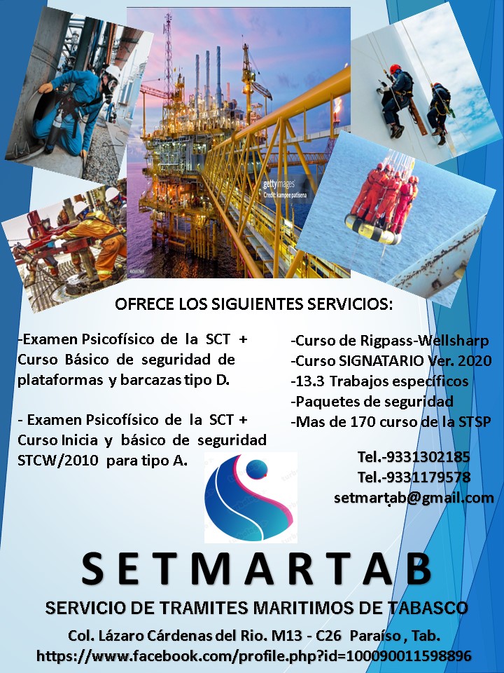 Bienvenido a Servcico de Trámites marítimos de Tabasco, somos líderes en capacitaciónen materia de Seguridad Industrial, Seguridad Marítima, Salud Laboral y Medio Ambiente. Capacítate con los expertos com mas de 15 años de experiencia que nos respaldan.